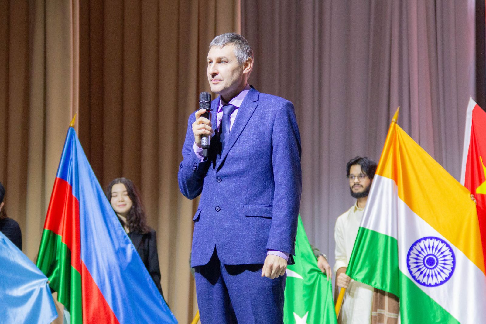 «Я рад приветствовать вас в стенах нашего университета. Мы горды тем, что такое большое количество иностранных граждан выбирают ЮУрГУ. В нашем регионе проживает более 100 различных национальностей, мы считаем, что культура общения – это основа взаимопонимания друг друга».