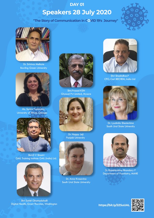 بادرمعهد مانيبالا للاتصالات (الهند) بقيادة البروفيسور نانديني لاكشميكانت، بدأ الأجتماع على الطاولة المستديرة الدولي «التواصل خلال COVID-19» ودعا ممثلي معهد جامعة جنوب الأورال الحكومية لوسائل الإعلام والعلوم الاجتماعية والإنسانية، رئيسة قسم الصحافة والإعلان والاتصالات، للمشاركة في المنتدى عبر الإنترنت مع الجمهور، دكتوراه في العلوم اللغوية، الأستاذة ليودميلا بتروفنا شيستركينا، وكذلك الأستاذه المساعد في القسم، ومرشحة العلوم اللغوية آنا فيكتوروفنا كراسافينا.