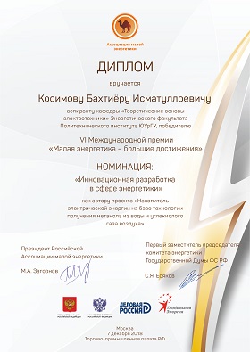 In the congress centre of the Chamber of Commerce and Industry of the Russian Federation in Moscow a ceremony of the 6th International Award Distributed Power Generation - Great Achievements was held. Among the award laureates were scientists from SUSU.