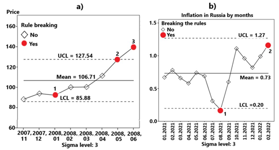 However, applied mathematics always strives to improve the result. In the calculations by Sergei Aliukov, if suspiciously many points accumulate in the borderline zone (for instance between 2 and 3 sigma) and a trend for some anomaly is identified, one could use the limit of not six but eight sigma and thus improve the accuracy of the forecast.