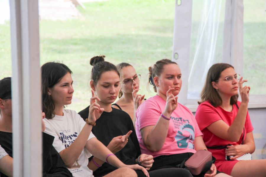 Director of inclusive events and leader of the sign song group in the "NasheMesto" open inclusive space Aleksandr Prisiazhniuk was the second speaker. During the master class, students learned the sign alphabet, basic words, and at the end they learned a fragment of a song in artistic sign language, and also got acquainted with the culture of open inclusive spaces.