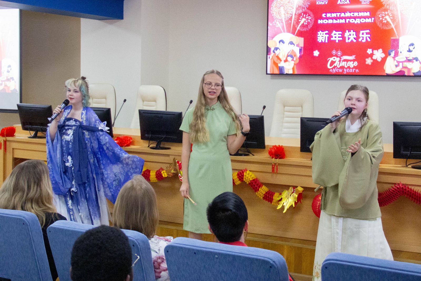 Students from the Institute of Linguistics and International Communications had prepared music and dance performances: Russian students sang songs about love and home in Chinese, while students from China sang New Year songs in Chinese and English.