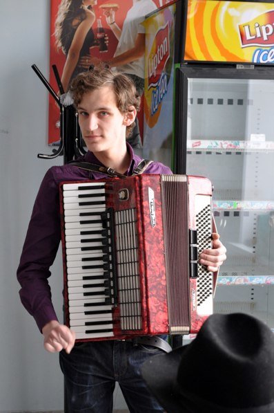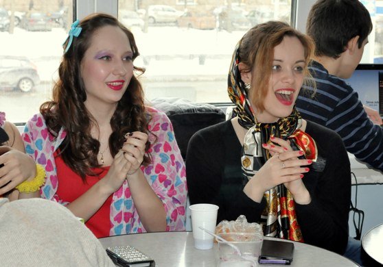 Развеселая «женитьба» проходила по всем правилам: румяная невеста (Яна Криворотенко, ЭТТ-170, «Маркетинговые коммуникации»),  первый парень на селе – ее жених (Кирилл Навоев, ЭТТ-170), тамада (Тимур Амиров, ЭТТ-260,  «Маркетинговые коммуникации»), мать невесты (Валерия Антонова, ЭТТ-241, «Маркетинг и менеджмент»), аккордеонист и неожиданно вернувшийся из армии экс-кавалер невесты «играли свадьбу» в  студенческом кафе на втором этаже второго корпуса.