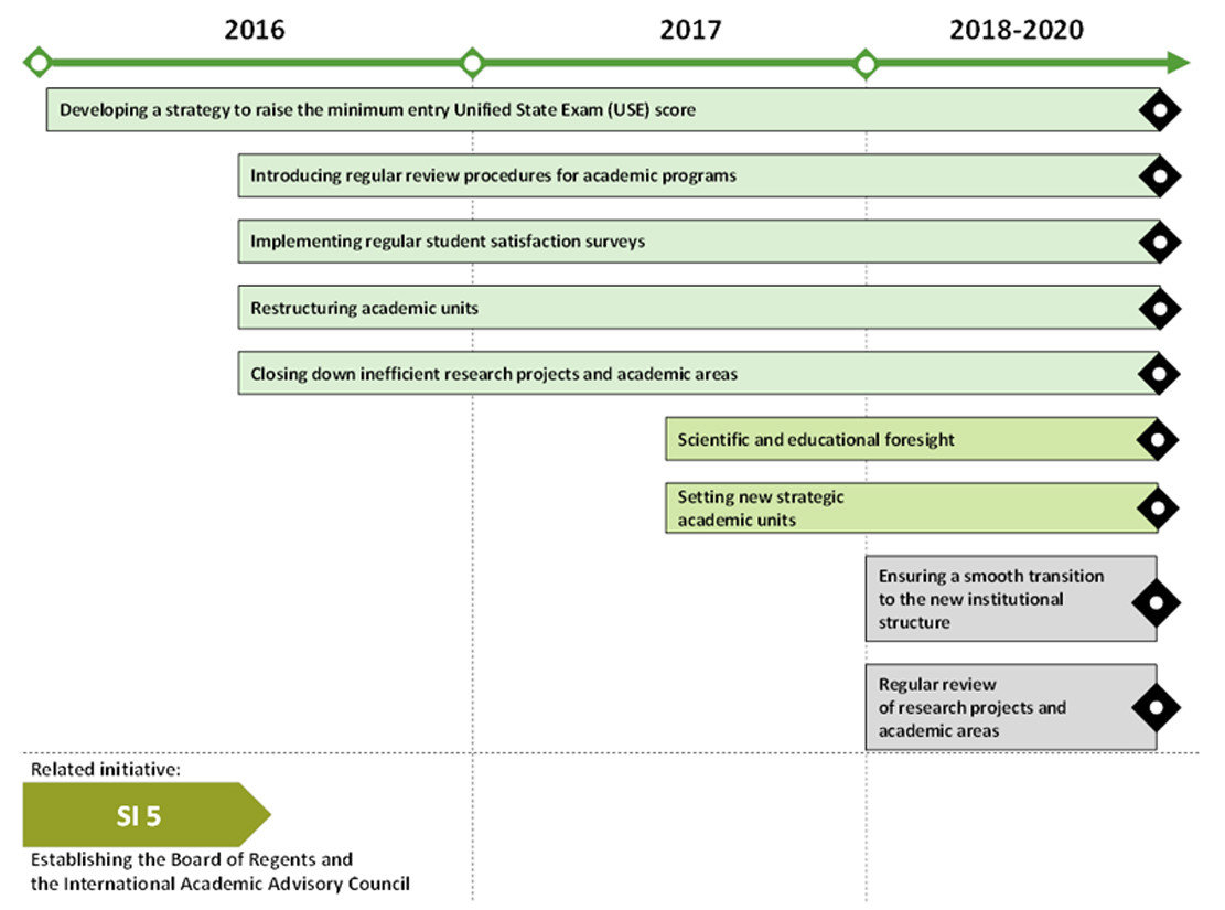For the first half of 2016, the University has prioritised the launch of SI5 and SI4 activities, i.e. rolling out the Program management system, transforming the University governance system, and concentrating resources on breakthrough areas while withdrawing from less effective areas. Also high on the agenda is SI7, aimed at building up the University's reputation, since the outcomes of this initiative will impact all activities incorporated in the Roadmap.