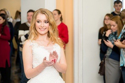 «Мы очень много репетировали дефиле и ездили на примерку в свадебный салон. Мне очень нравится платье, в котором я сегодня выступила, и чувствовать себя в роли невесты очень необычно. Все выступление прошло так, как и планировалось. Незабываемые ощущения», – поделилась эмоциями студентка ВШ ЭКН Татьяна Серебренникова.