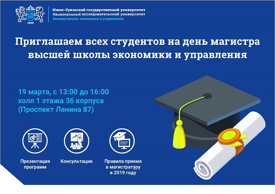 19 марта 2019 в ЮУрГУ состоится презентация магистерских программ Высшей школы экономики и управления.