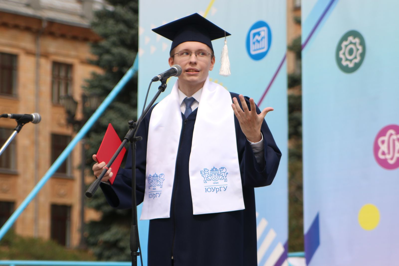 «Сегодня вы выпускаетесь из одного из лучших университетов нашей страны, проделав большой путь, получив уникальные знания. Нам всем, региону, стране не терпится, когда вы начнете реализовывать эти знания в жизни. Не забывайте мечтать. Каждый из вас обязан иметь мечту, а мы будем мечтать вместе с вами о развитии нашего города, ведь именно вам предстоит сделать из Челябинска промышленно-индустриальный центр, уникальную туристическую столицу!» – обратился к выпускникам Андрей Шмидт, выпускник ЮУрГУ, председатель Челябинской городской Думы.