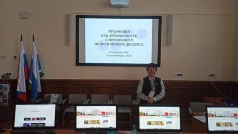 Доклад Н. Н. Кошкаровой был посвящен анализу русофобии в контексте ценностных оснований существования политического дискурса, который характеризуются доминированием ценностных и антиценностных установок его участников.