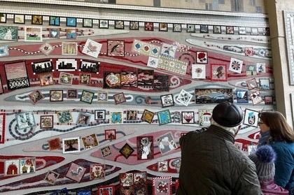 Арт-объект выполнен в яркой стилистике «пэтчворк» – это сотни маленьких картинок, отражающих жизнь и историю нашего города. Здесь можно найти несколько образов главного корпуса ЮУрГУ.