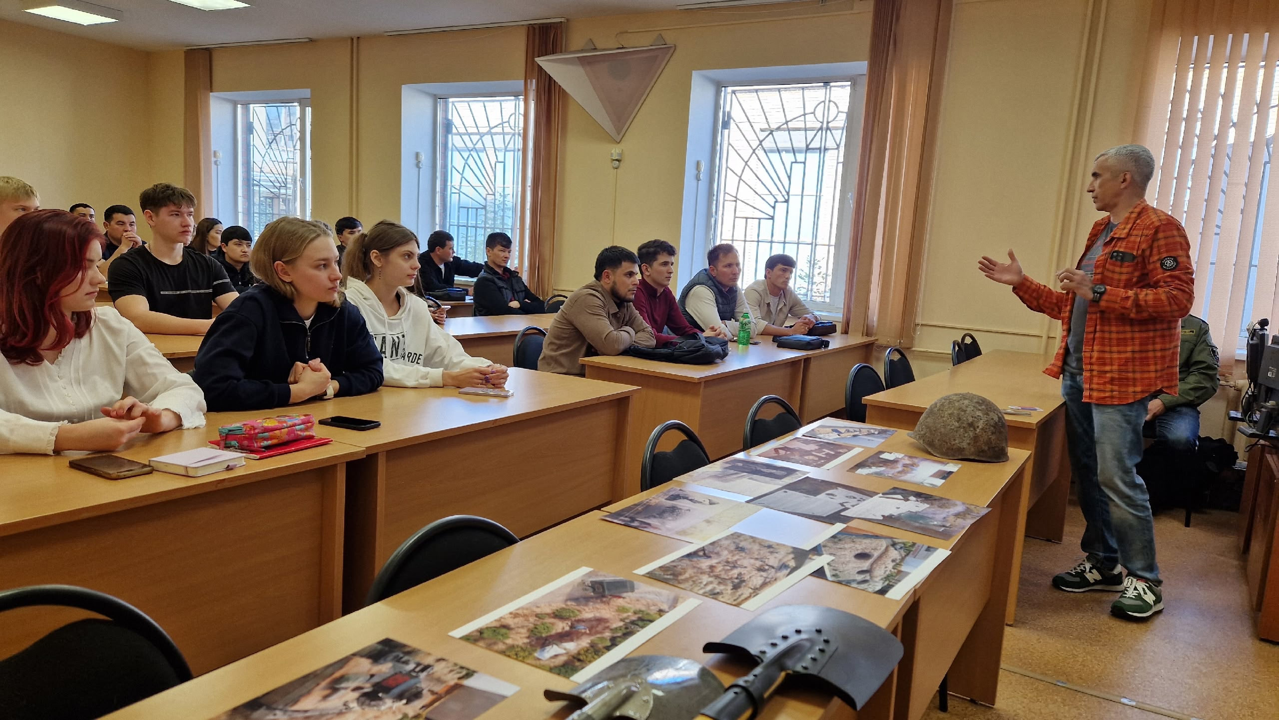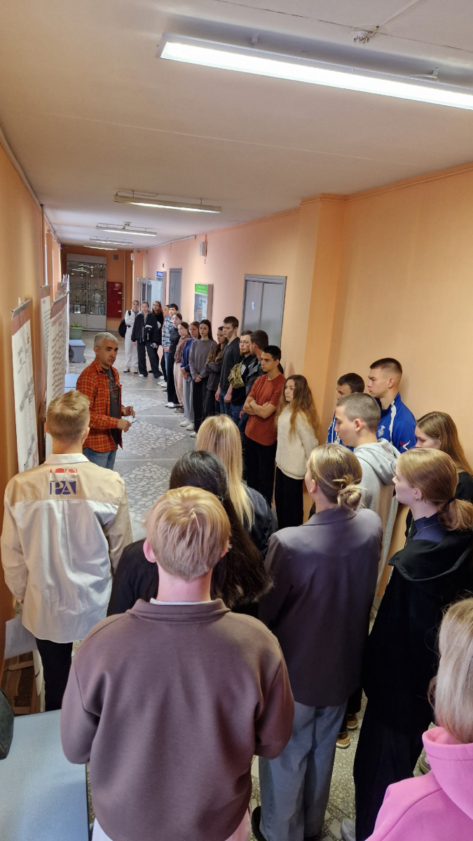 Руководитель ЧРОО ПО «Ориентир» Евгений Кочетов лично рассказал ребятам, что до сих пор идут поиски останков солдат, которые возможно в списках и не значились, насколько это важно для родственников погибших и страны в целом. Находят письма, заметки, по которым восстанавливается история с места событий.
