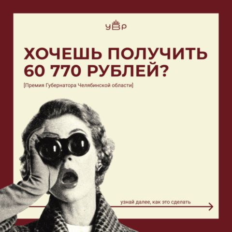 Студенты ЮУрГУ, активно участвующие в проектах, волонтёрстве и продвижении культуры региона, могут побороться за премию Губернатора Челябинской области размером 60 770₽. Победителей будет всего 30 человек!