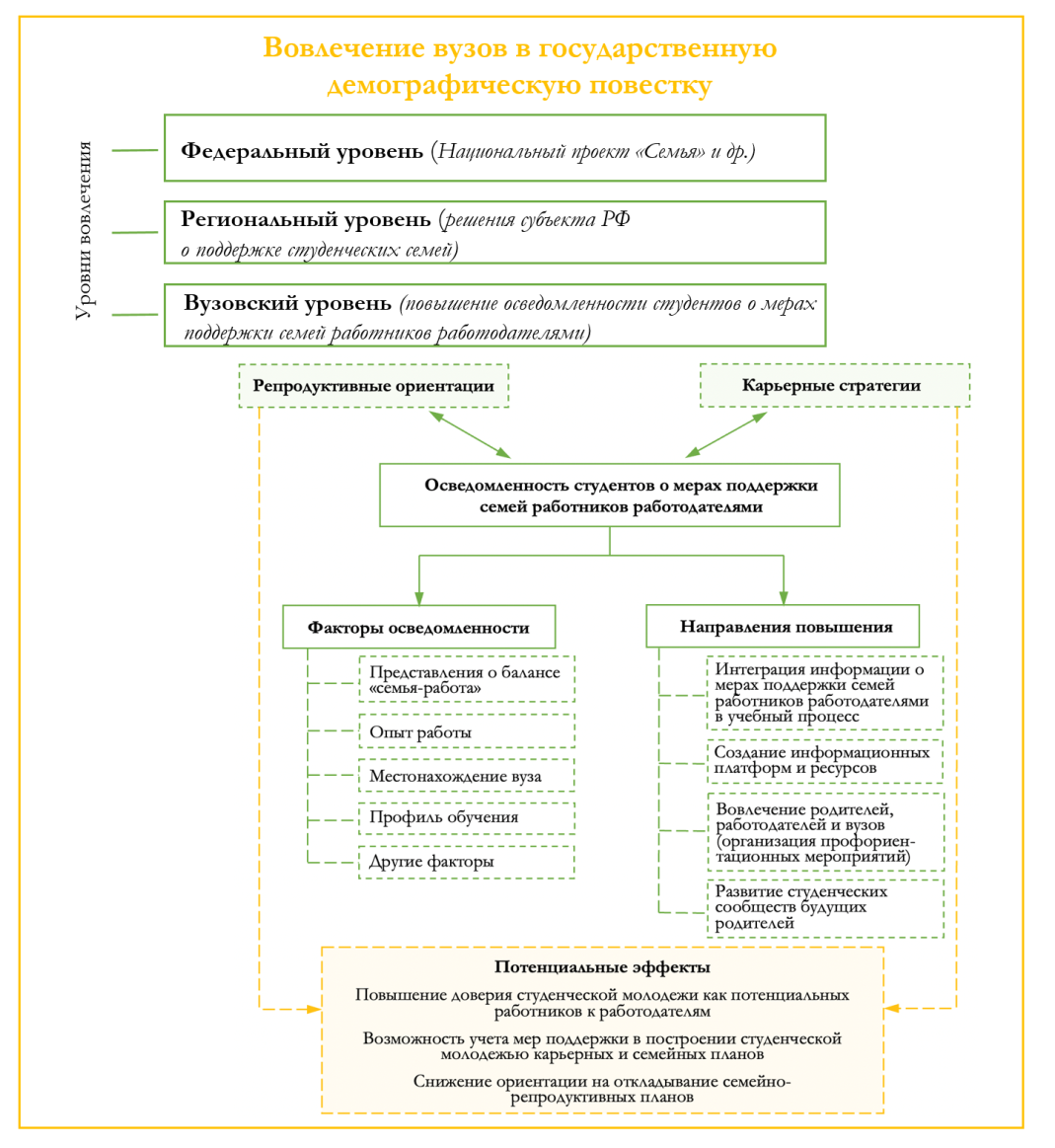 Для решения вопроса осведомленности молодежи уральские ученые предложили вовлекать университеты в демографическую повестку дня. Вузы, создавая информационные онлайн-ресурсы и буклеты, организовывая специальные встречи с представителями крупных региональных предприятий, могут в полной мере знакомить старшекурсников с правами и возможностями корпоративной поддержки семей с детьми.